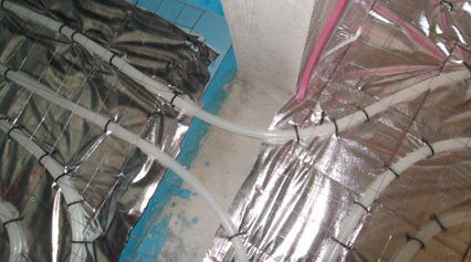 地暖管防渗止水带工艺在最易产生渗漏的部位,将混凝土找平层形成二道止水带,一旦地面因沉降等因素而渗漏时,能将渗漏范围控制在最小区域。