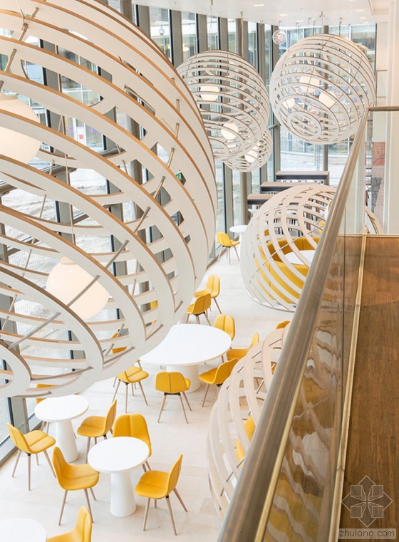 HEYLIGERS Design+Projects设计团队,为Nuon能源公司设计了一间新办公室。设计师重点着眼于多样化而灵活的办公环境,将这个六层的总部办公大楼,按照功能划分为不同的“社区”。不仅如此,整栋大楼还为使用者提供了完善的各项设施:带有酒水饮料吧的接待大厅、拥有650个餐位的餐厅、图书馆、特浓咖啡吧、服务中心、会议中心,以及一个空中休息室。总之,这是一个被充分利用的灵活的开放式办公空间。